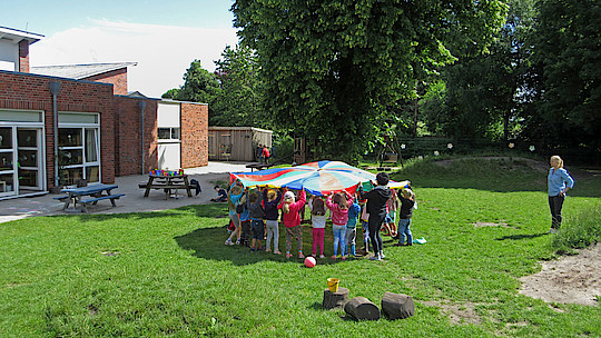 Unsere Ev. Kita Harrislee ist eine sechsgruppige Einrichtung. Es werden dort ca. 90 Kinder von 15 Mitarbeiter:innen in vier Kindergartengruppen, einer Krippengruppe und einer altergemischten Gruppe betreut. Die Öffnungszeit unserer Kita ist von 07:00 bis 16:00 Uhr.